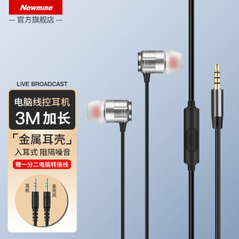 紐曼JK12電腦耳機(jī)入耳式有線3米加長(zhǎng)線帶麥臺(tái)式機(jī)雙孔插頭帶